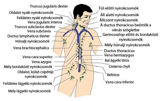 A nyirokrendszert a nyirokerek és s nyirokcsomók alkotják, melyek behálózzák egész testünket.