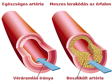 A jobb oldali képen egyértelműen látható, hogy az elmeszesedett érfal miatt mennyivel kisebb terület áll rendelkezésre a vér áramlásának. Ezért a szervezet vérellátása nem tud optimálisan működni.