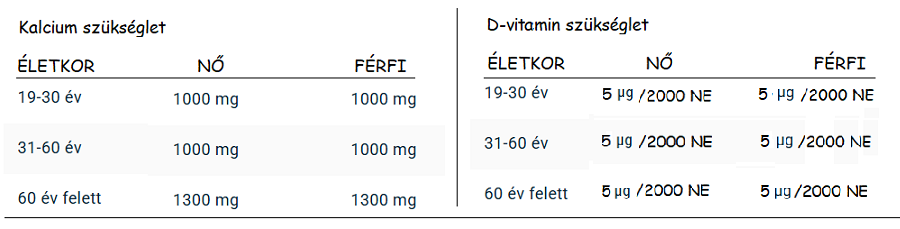 Mennyi a kalcium és D-vitamin napi szükséglete?